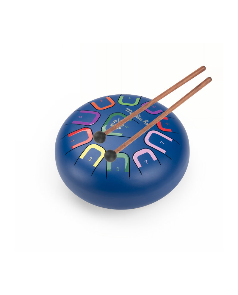 D'un diamètre de 24 cm et comprenant 11 notes, le tambour à languettes initient les enfants à la musique.
