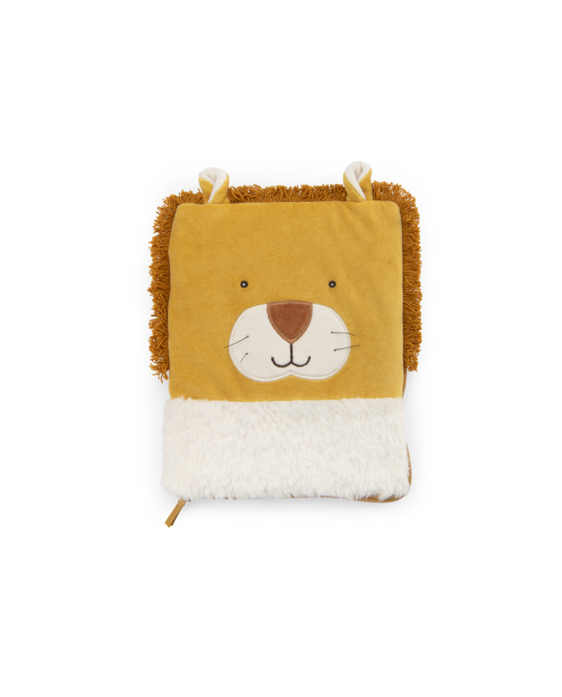 Protège carnet de santé à l'effigie de Mamba le lion, alliant crinière, fourrure et velours.