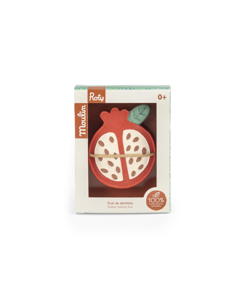 Fruit de dentition 100% caoutchouc naturel, issu de la sève d'Hévéa.
