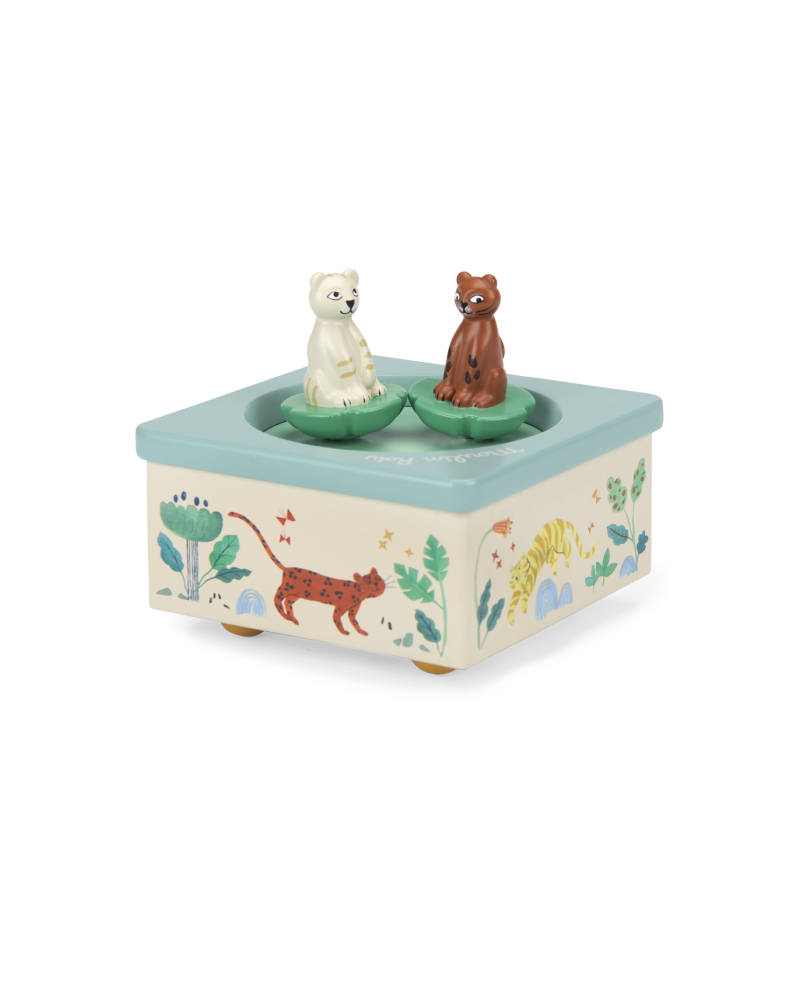 Baboo et Taïgo virevoltent au rythme de la berceuse pour endormir tendrement votre enfant. La boîte à musique a été joliment illustrée à l'aquarelle par Élodie Coudray.