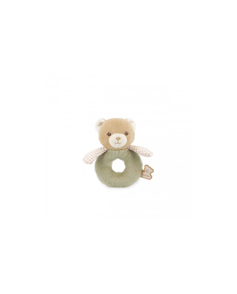 La forme en anneau de ce doudou permet à bébé de l’attraper facilement, encourageant ses premiers gestes précis et l’exploration de ses mains. Sa belle fourrure verte est très douce au toucher, ce qui procure une sensation agréable pour les petites mains de bébé. Cette texture stimulante invite aussi à de tendres câlins. Avec ses bras en popeline et en imprimé vichy, ce doudou ours arbore un look tendre et intemporel, propre à l’univers Kaloo. Ce doudou hochet est un indispensable pour amuser votre bébé : il favorise son développement sensoriel et sa coordination main-œil. Son petit format de 12,5 cm en fait un jouet d'éveil facile à emporter partout : il se glisse facilement dans le sac à langer ou la poussette pour que bébé ait toujours son compagnon tout doux à portée de main pour des moments de jeux.