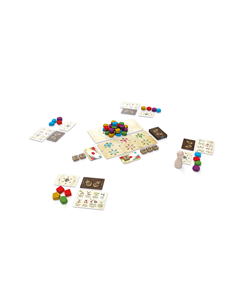• Chacun votre tour vous jouez 1 action et une seule parmis les 7 possibles du jeu. Le tout en silence et sans donner d’indication gestuelle sur vos intentions. Les autres chamans devront interpréter votre but uniquement grâce à vos actions.