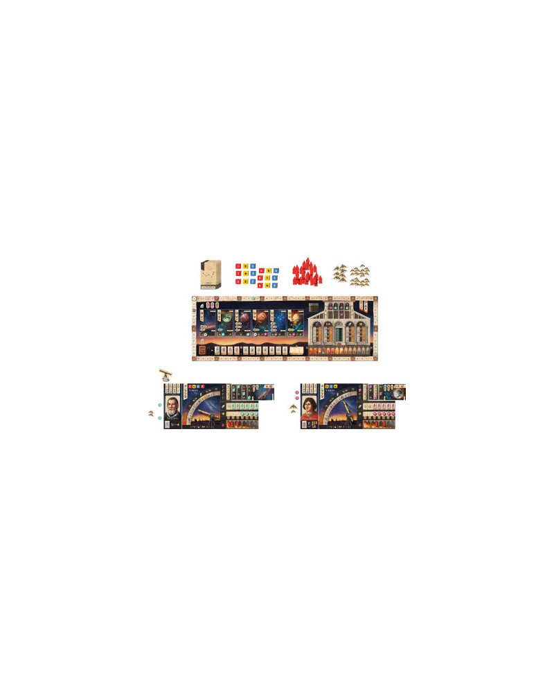 Galileo Galilei est un jeu de style euro, dans lequel vous incarnez un astronome en quête de découvertes. Explorez de nouvelles planètes, révélez des systèmes stellaires inconnus, perfectionnez votre télescope et réalisez des percées scientifiques à une époque marquée par l'obscurantisme.