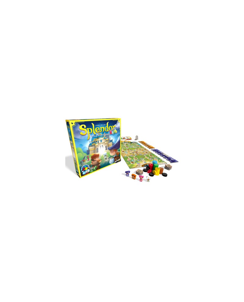 Dans Splendor Kids, vous vous lancez dans une aventure passionnante pleine de décisions intelligentes, de choix stratégiques et de rencontres chaleureuses dans les villages et les villes. Celui qui utilise bien ses ressources, planifie habilement ses déplacements et arrive à temps au palais remporte les faveurs de la reine !