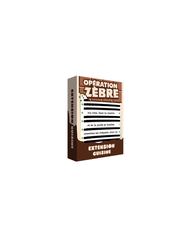 Opération Zèbre plonge votre équipe dans un jeu de déduction et de communication stratégique intense ! Dans ce jeu d’agents secrets, votre mission est de transmettre des documents classifiés sur des villes, séries, célébrités… et maintenant, grâce à cette extension, sur la cuisine. Censurez vos indices pour ne donner que juste assez d’informations, et faites deviner la bonne réponse à vos coéquipiers avant que le temps ne s’écoule. L'Extension cuisine apporte 55 cartes recto-verso, soit 110 nouvelles cartes à découvrir et deviner, multipliant les thématiques ludiques (ici la cuisine) et les défis de communication. À chaque manche, stratégie, créativité et observation sont cruciales pour dominer la partie.