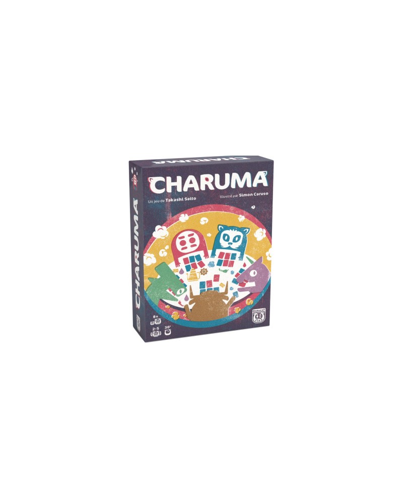 Charuma est un jeu de plis astucieux avec une part de prise de risques. - Commencez par construire votre main dans une phase d'enchères rapides en utilisant vos points de victoire. Votre main comporte alors 8 cartes, dont 6 visibles sur la table et 2 cachées dans vos mains. - Puis, enchaînez les plis en fonction des cartes que vous voyez chez vos adversaires. Chaque carte inconnue vous forcera à prendre des risques pour créer des moments forts autour de la table. Pour gagner la partie, il vous faudra gérer vos dépenses de points de victoire pour récupérer les cartes qui vous intéressent et vos gains en fin de manche.