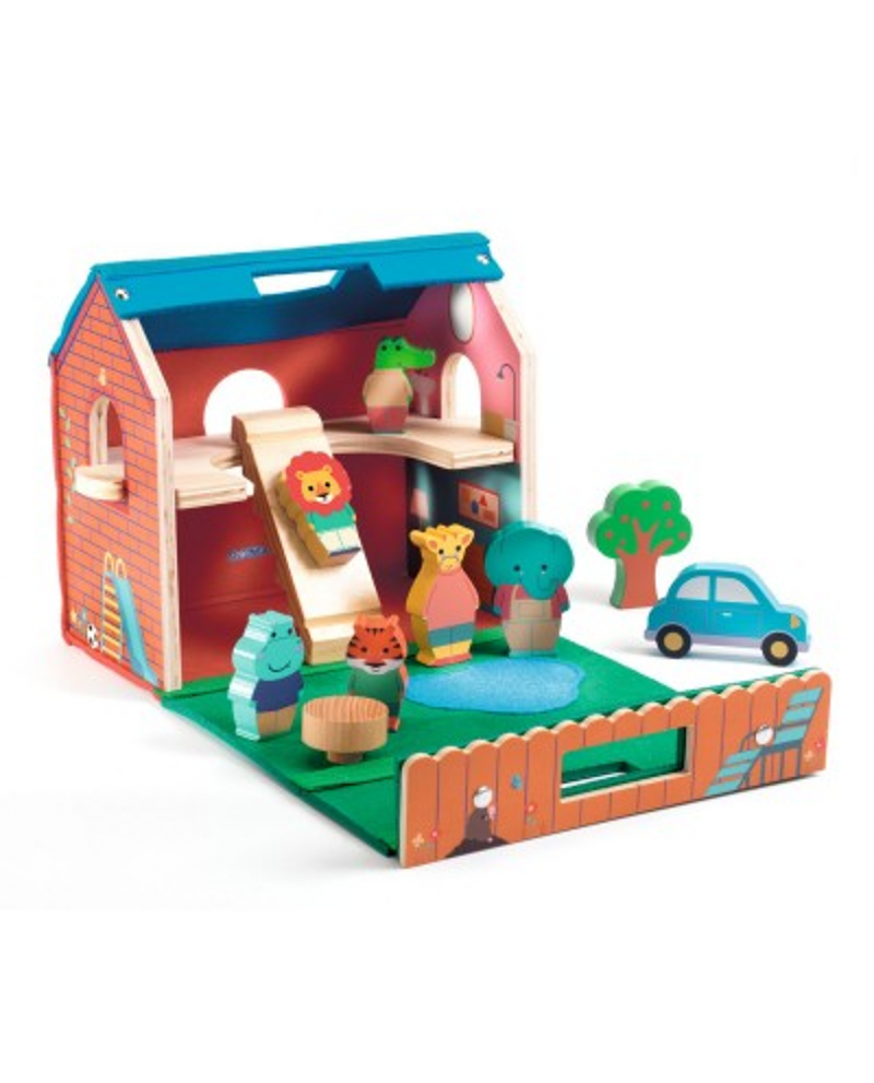 Une maison nomade en feutrine épaisse et en bois, parfaite pour les enfants dès 18 mois. En ouvrant la maison, l’enfant découvre 7 personnages en bois, une voiture, un escalier transformable en toboggan, et un grand jardin pour stimuler son imagination. Ce jouet invite à inventer des histoires passionnantes tout en s’amusant. Après avoir joué, il suffit de ranger tous les accessoiresdans la maison, qui se transporte facilement grâce à sa poignée pratique.