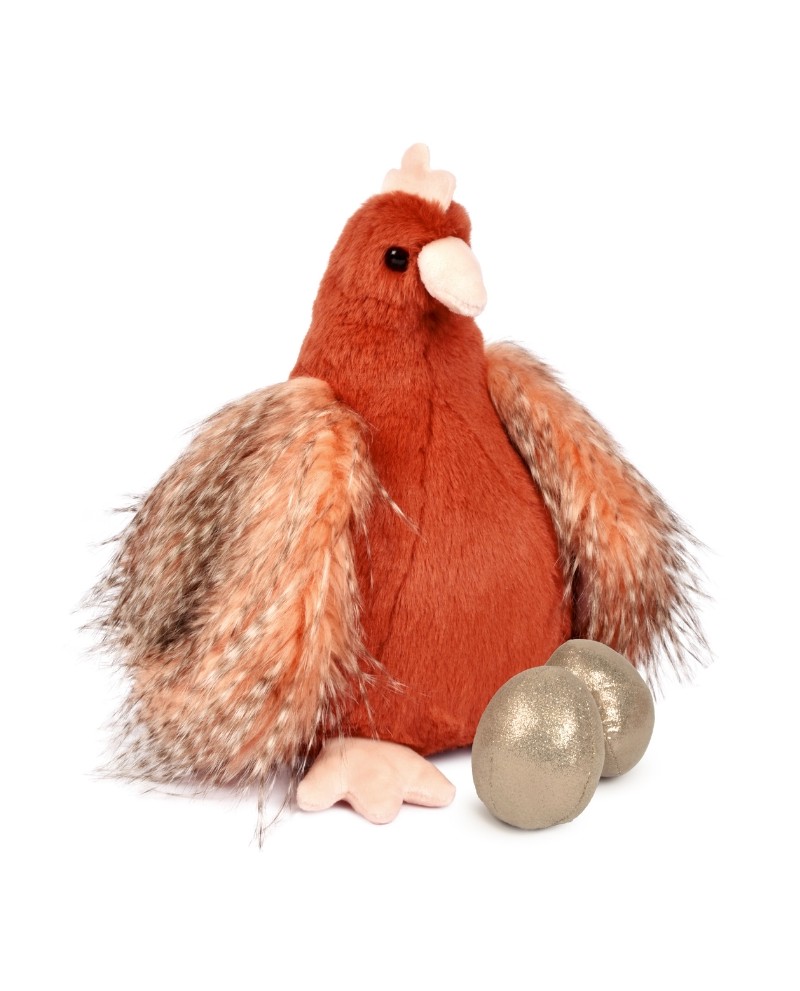 Craquez pour cette poule pas comme les autres ! Compagnon idéal des petits et grands, cette poule en peluche originale toute douce se distingue par ses détails dorés uniques. Véritable objet de curiosité et de tendresse, elle s'installe dans votre déco pour y pondre un grain de folie et beaucoup de douceur ! Livrée avec ses oeufs en "or".